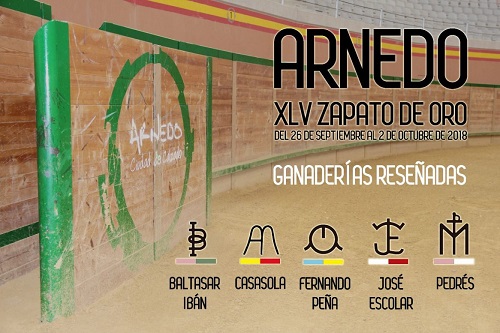 La comisión asesora taurina del Zapato de Oro de Arnedo ha reseñado las cinco ganaderías que se lidiarán en la próxima feria del Zapato de Oro, que se celebrará en el marco de las fiestas de San Cosme y San Damián, entre el 26 de septiembre y el 2 de octubre de 2018.