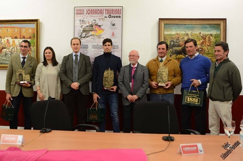 Al finalizar la ponencia se hacia entrega de los trofeos a los triunfadores de la corrida de Toros de la Feria Taurina de Osuna 2017. El maestro Alberto López Simón recogía de manos del Delegado de Cultura y Festejos de Ayuntamiento de Osuna, Manuel Rodríguez Seco-Herrera, el trofeo como autor de la mejor faena y los hermanos ganaderos Julio, Pablo e Ignacio de la Puerta García-Corona recogían de manos de la delegada de Bienestar Social y de Participación Ciudadana, Brígida Pachón, el trofeo al toro “Amapola”, mejor toro de la Feria.
