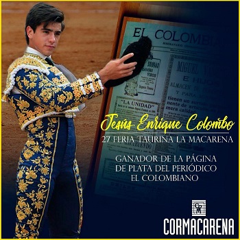 Jesús Enrique Colombo se alzó con el galardón de la “Pagina de Plata del Periódico El Colombiano” de la pasada feria de Medellín