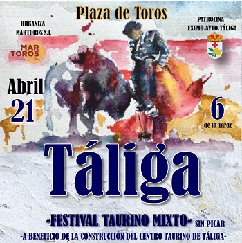 El próximo 21 de abril se va a celebrar un festival taurino mixto en la localidad de Táliga.Dicho festejo será a beneficio del Centro Taurino de Taliga y su plaza de toros