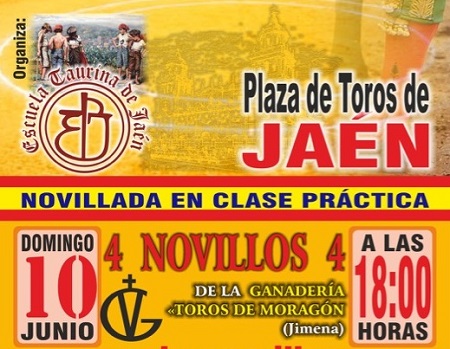La Escuela Taurina de Jaén ha organizado una novillada clase práctica el próximo 10 de Junio en la plaza de toros de Jaén. Dicha fecha coincide con la celebración de la Virgen de la Capilla en la capital jienense. Se van a lidiar reses de Toros Moragon para: