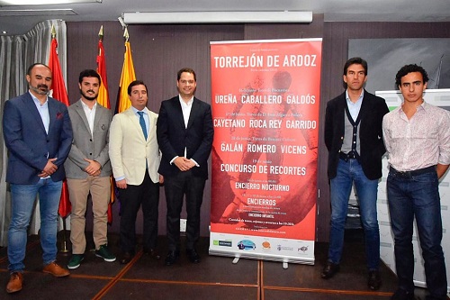 La empresa Lances de Futuro ha presentado esta tarde en el Hotel Asset los carteles de la Feria de Torrejón de Ardoz 2018. Un abono que está compuesto por dos corridas de toros y una de rejones más un festejo de recortes y varios encierros. El acto ha contado con la presencia del alcalde de la ciudad, Ignacio Vázquez y la mayoría de su equipo de gobierno; del empresario José María Garzón, además del matador de toros, Joaquín Galdós y del rejoneador Sergio Galán.