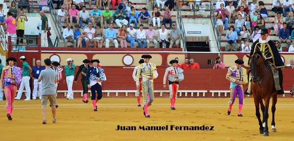 Abrió plaza “Portero” nº 71, al que el Fandi, lo recibió de una larga cambiada desde el tercio, variado estuvo con el capote y muy aplaudido en banderillas, cerrando el tercio con un gran par al violin, la faena fue de poder a poder en la que el granadino supo dosificar y aguantar por ambos pitones las embestidas del animal, gustándose en ciertos momentos de la lidia, mató de estocada casi entera, y paseo la primera oreja de la tarde.
