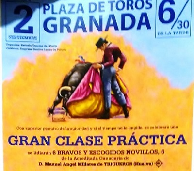 La Escuela Cultural Taurina de Atarfe ha organizado una clase práctica el próximo domingo 2 de septiembre.El festejo tendrá lugar en la plaza de toros de Granada y cuenta con la colaboración de Lances de Futuro (gestora de la plaza de Granada).Se van a lidiar reses de Manuel Ángel Millares para: