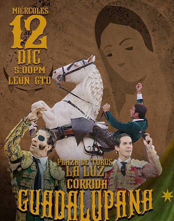 La empresa Espectáculos Taurinos de México ha cerrado el cartel de la tradicional corrida Guadalupana que tendrá lugar el próximo 12 de diciembre en la localidad de León (México) .El cartel está formado por el rejoneador Andy Cartagena y los diestros Juan José Padilla y Diego Silveti que lidiaran un encierro de San Miguel de Mimiahuapam