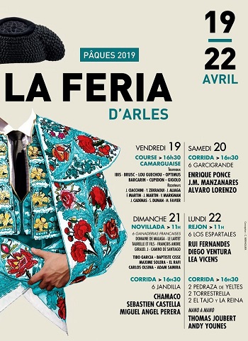 En el día de ayer fue presentada la Feria de Pascua de la localidad francesa de Arles. Destaca la vuelta a los ruedos del diestro “Chamaco” el próximo 21 de Abril junto a Sebastián Castella y Miguel Ángel Perera con un encierro de Jandilla.Los carteles son los siguientes