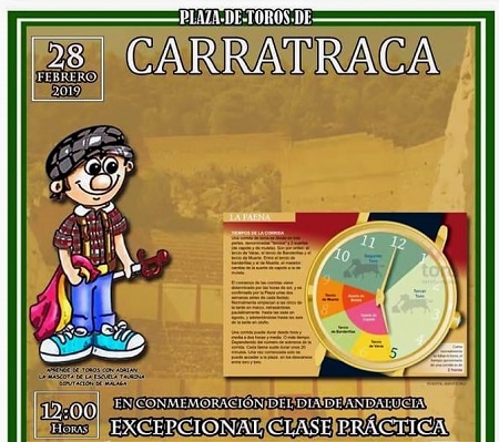 La Escuela Taurina de Málaga ha organizado una Clase Practica el próximo 28 de Febrero en la localidad malagueña de Carratraca con motivo del día de Andalucia.Se van a lidiar reses de la ganadería de Martín Lorca para: